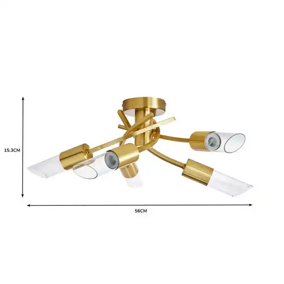 Featuring a modern semi-flush fitting design, the Corvus Corvus 5 Light Ceiling Fitting is beautifully crafted with five arms constructed from steel and glass with a stunning brushed gold finish, making it the perfect choice for contemporary decors. This piece is available in other colours and matching family items are available to help coordinate your home.