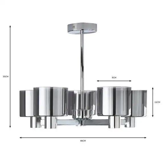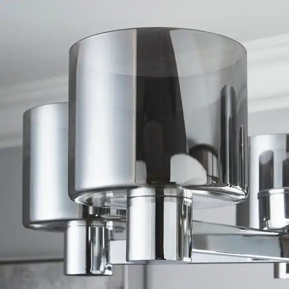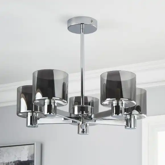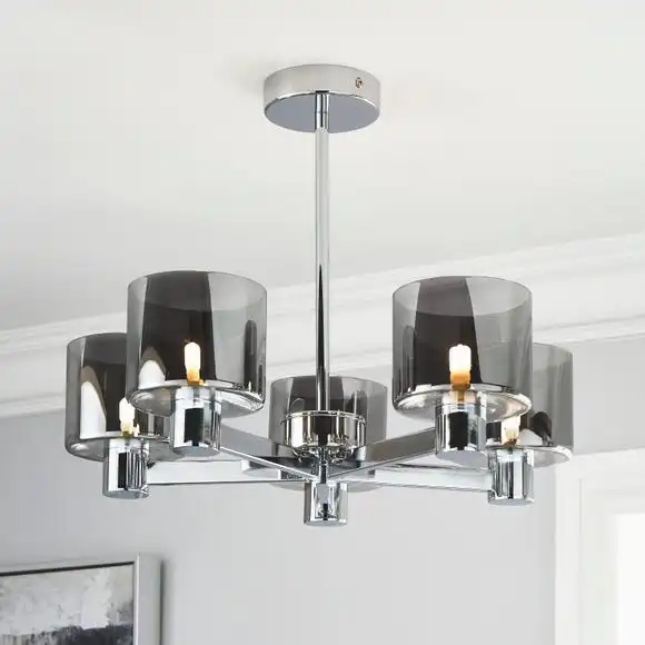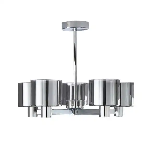 Featuring a modern luxe design, this light is ideal for adding a touch of contemporary style to any room. With a chrome plated finish and five smoked glass shades, this semi flush ceiling light is not only stylish but modern. This light is dimmable compatible and is perfect for use with G9 LED lamps.