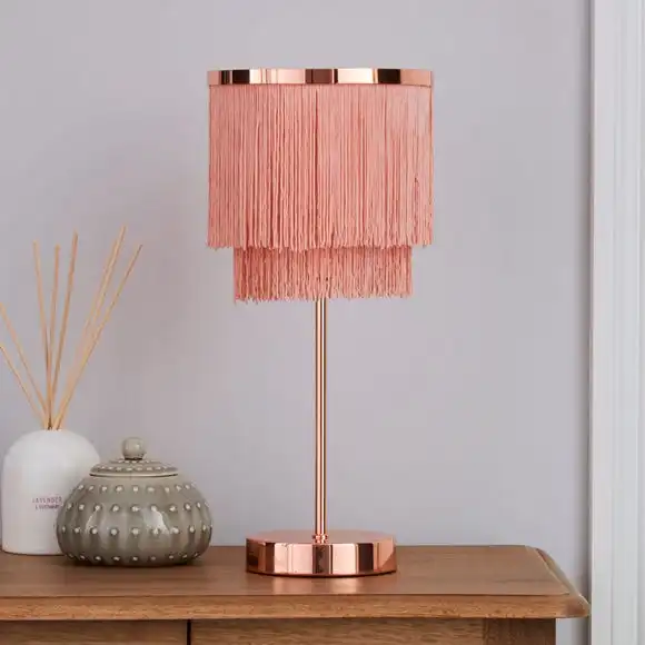 Dunelm Jaz Fringe Pink Table Lamp