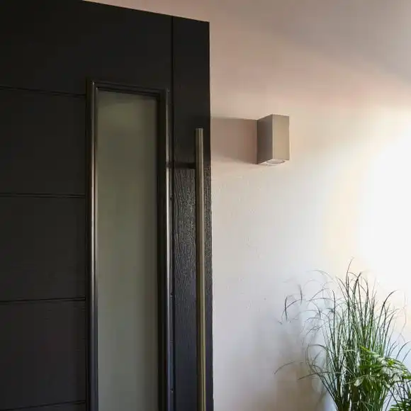 Featuring a modern and minimal design, the Lamont outdoor wall light is discreet and perfect for lighting up your outdoor spaces. Crafted from die cast aluminium alloy with a satin gold effect finish. The Lamont wall light has an IP44 rating, perfect for keeping your porch or patio lit through all seasons and available in a choice of stylish textured black and matt grey finishes.