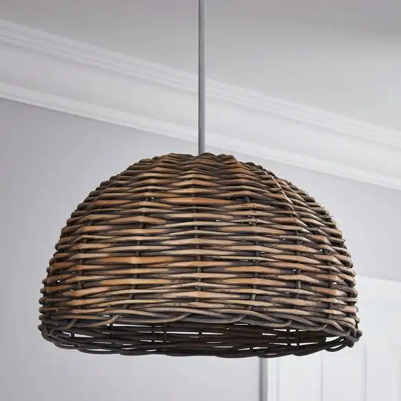 This country inspired split weave shade comes in a domed basket shape. It features a real wood, grey wash, natural weave and fit all standard UK BC B22 ceiling fittings.