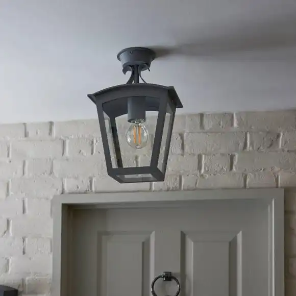 Offering a modern take on a traditional lantern design, the Leese outdoor porch fitting would bring a classy touch to your outdoor space. Boasting an IP44 rating, this timeless stainless steel ceiling fitting can be used outdoors or even in your bathroom, and features a choice of textured black or matt grey finishes. Matching items are also available making it easy to create a coordinated look.