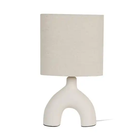 Modern and funky, our Noah Arc Table Lamp has been crafted with a faux linen shade in a natural colourway to suit any home interior decors. The Artizan design allows your home to look stylish and sleek with the textured ceramic base in an arc shape. Available in 2 sizes for any tabletop space.