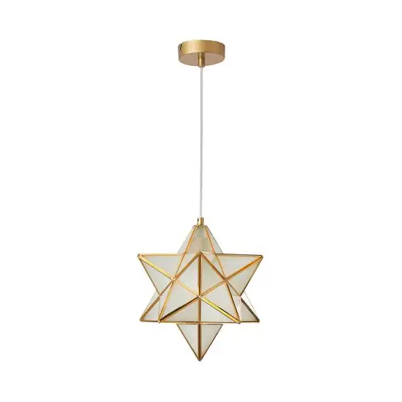 Add a striking addition to your home with this stunning Virgo Star 26cm Ceiling Fitting. Beautifully designed with a 3D Star pendant in a Gold Finish with White Glass, paired with a gold finish ceiling plate. This ceiling fitting is height adjustable and dimmable with a compatible bulb and dimmer switch.