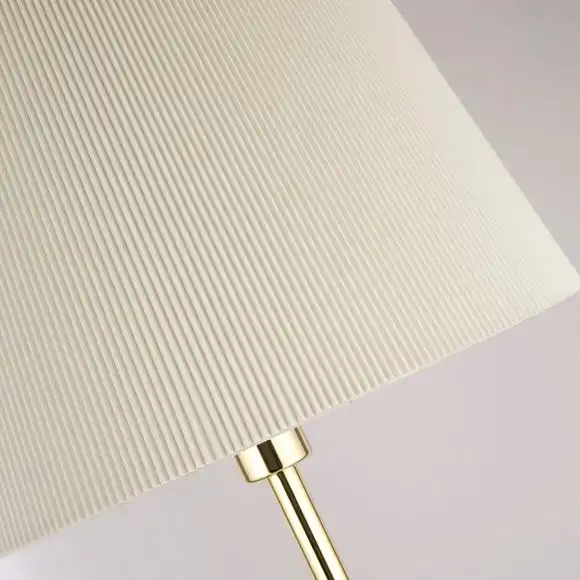 Elegantly crafted to give your decor a glamorous touch, this stunning floor lamp features a simplistic design to brighten up your room. Finished with a brushed gold stand and square chrome base, this floor lamp comes complete with a white pleated shade.