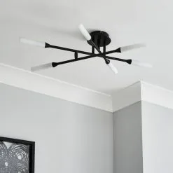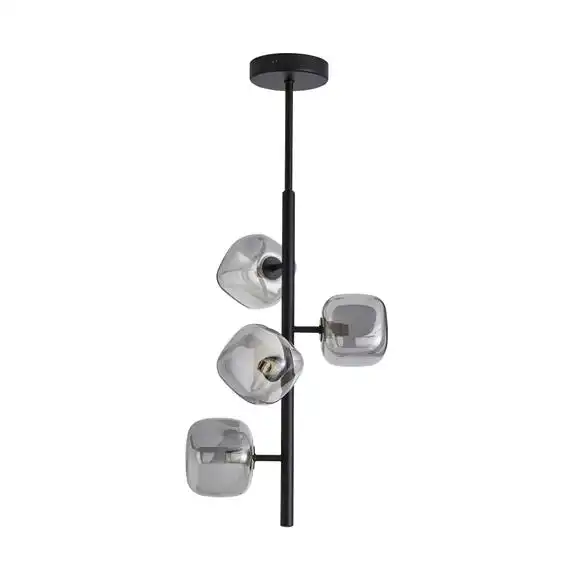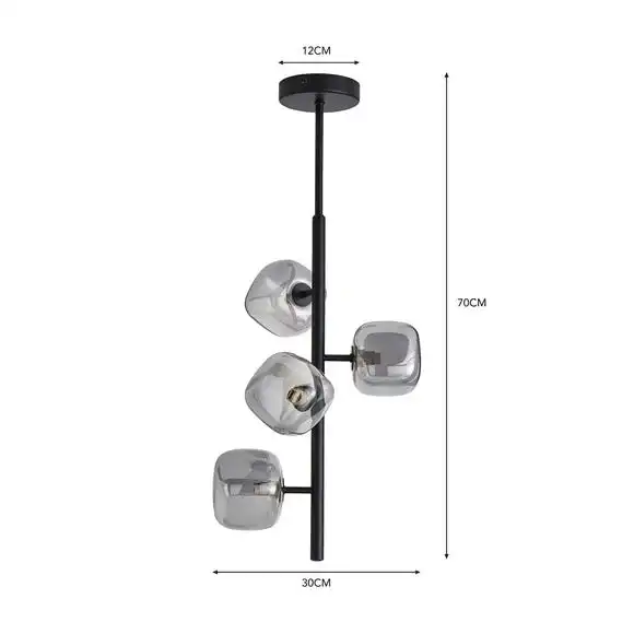 This stunning 4 Lighting Ceiling Fitting has a contemporary design that will complement an array of home decors, alongside its stylish colourway. Elements Tollose 4 Lighting Ceiling Fitting features smoke square glass shades with a rounded edge placed in a staggered position along the black vertical frame. This piece is compatible with dimmable lighting and matching family items are also available to coordinate any room of your home.