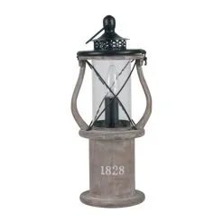 Add a timeless addition to your home with this stunning Natural History Museum Table Lamp, beautifully crafted with a clear glass base with a removable medium wood stand held in place with a rubber seal, perfect for displaying small ornaments or artificial plants inside for a unique look. This table lamp is complete with a beautiful grey fabric shade and an industrial grey metal stem. Coordinate your home with matching family items from the Natural History Museum range. This table lamp is inspired by the fabulous Museum building itself, and the display cabinets within.