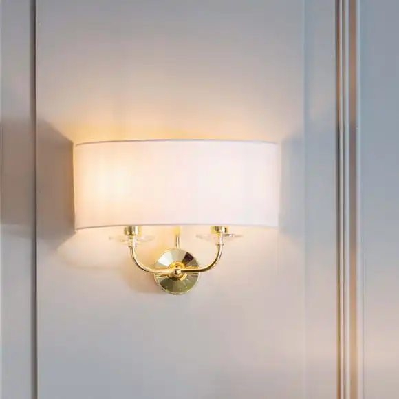 Introduce a modern vintage feel to your home, with the Vogue Katarina Crystal Wall Light completed with crystal glass detailing and a white silk semi circular shade. This beautiful design is practical, dimmable and suitable to use with LED lamps. Matching family items are also available to help coordinate your home.